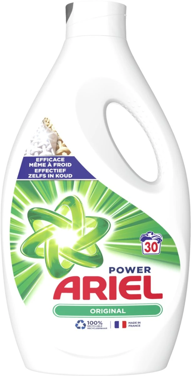 - Recyclebare verpakking: Ariel vloeibaar wasmiddel wordt geleverd in een recyclebare verpakking