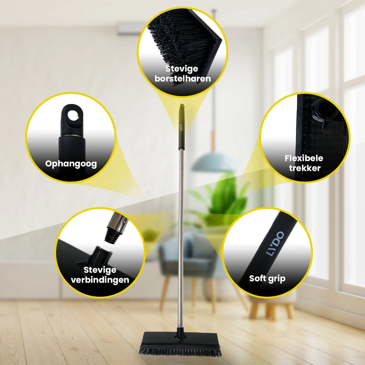 Schrobbezem Zwart Luiwagen Met Steel 120cm – Tuinbezem Straatbezem – Schoonmaak Schrobber Kunststof Harde Bezem – Schrobborstel En Schuurborstel